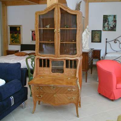 mobile in palissandro con ribalta, cassetti e vetrina